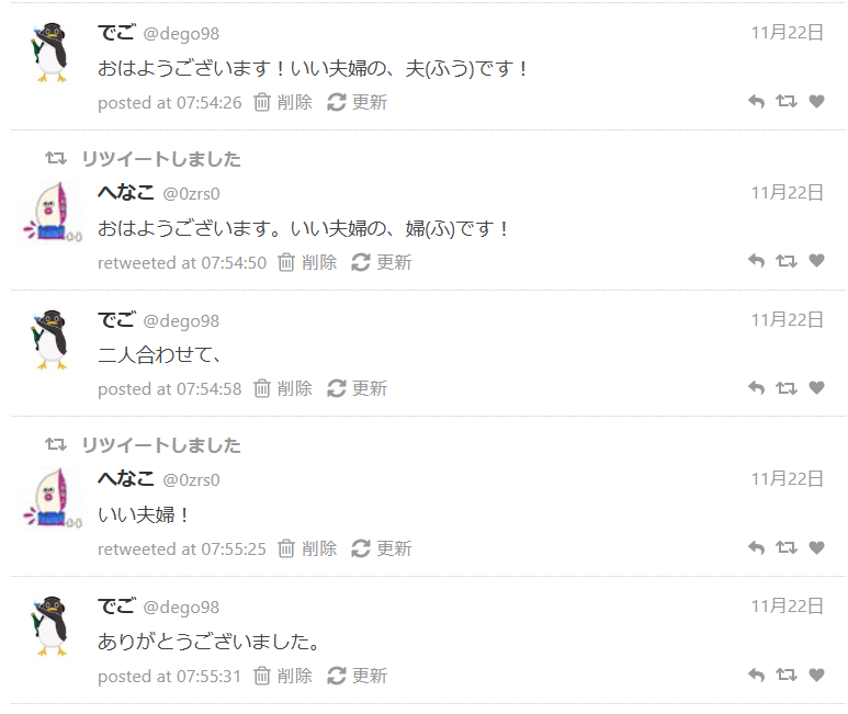 今年もいい夫婦がやってきました。いい夫婦の夫と婦を今後ともよろしくお願いします。